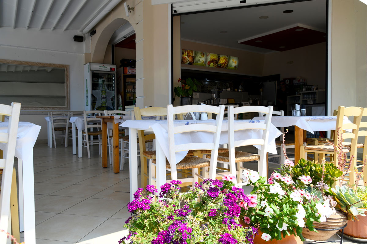 οικογενειακή επιχείρηση, μπροστά στην θάλασσα και με φανταστική θέα στην παραλία. Εδώ θα βρείτε τις πιο νόστιμες πίτες με σουβλάκια ή γύρο,