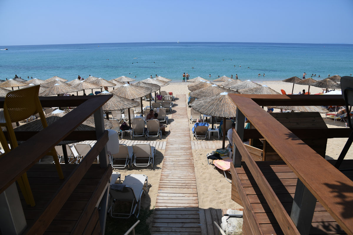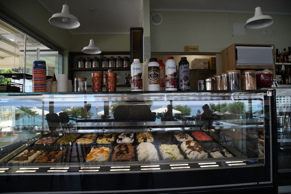 Στην παραλία διαθέτουμε ομπρέλες με ξαπλώστρες όπου σερβίρουμε καφέ, χυμούς, αναψυκτικά, μπύρες και φαγητό για όσους επιθυμούν. Οι τιμές μας είναι