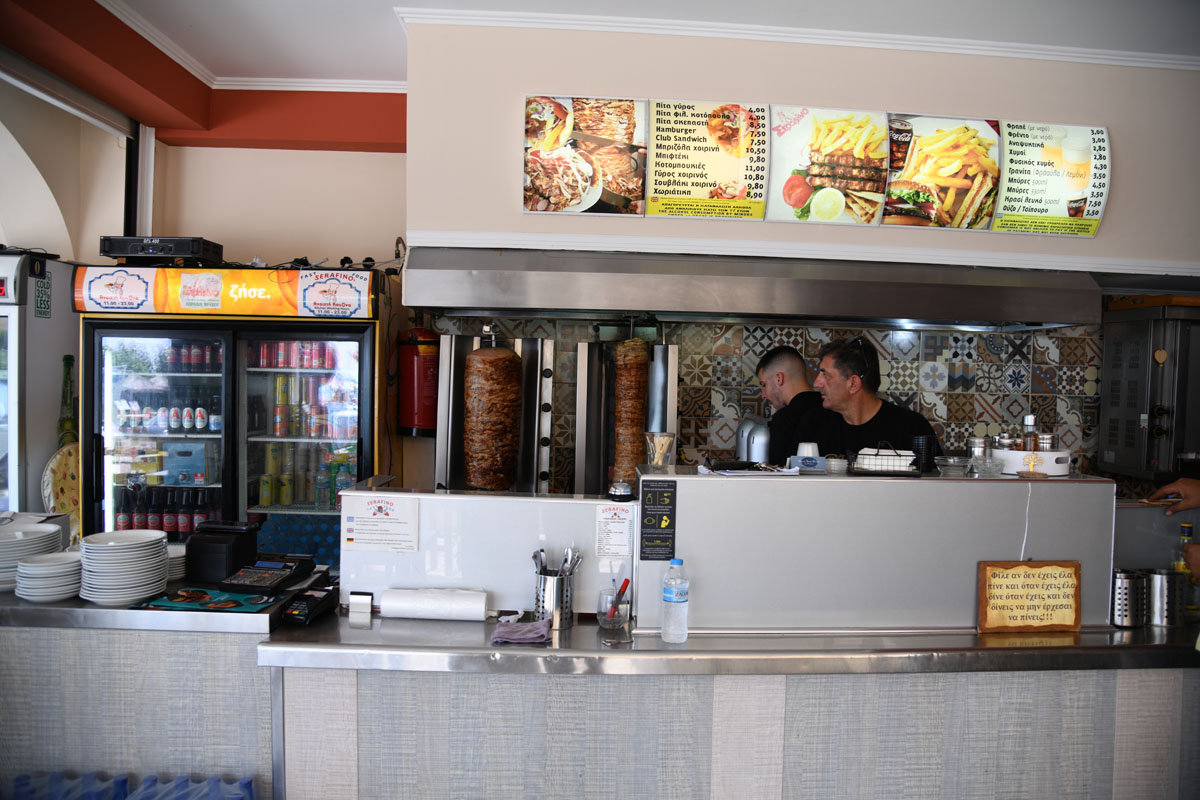 οικογενειακή επιχείρηση, μπροστά στην θάλασσα και με φανταστική θέα στην παραλία. Εδώ θα βρείτε τις πιο νόστιμες πίτες με σουβλάκια ή γύρο,