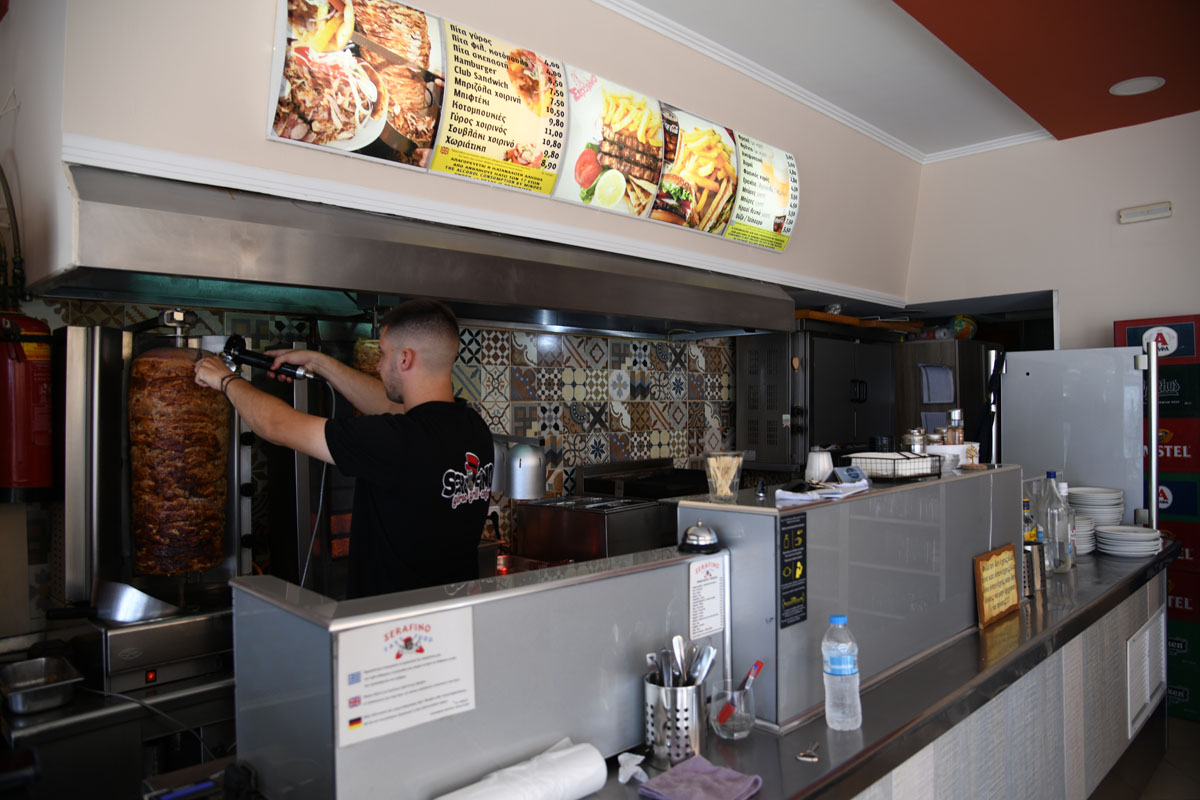 Το Serafino Fast Food βρίσκεται στην παράλια Βράχου-Λούτσας, από κάτω ακριβώς από τα διαμερίσματα μας Ocean View Rooms. Πρόκειται για μία